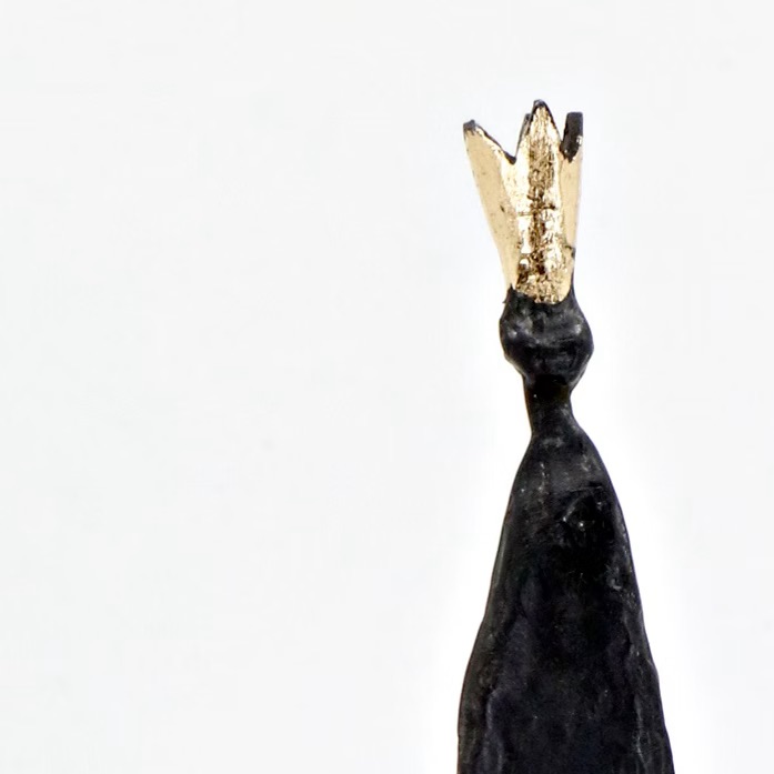 Siw Hallgren Roppestads skulpturer er unike verk, hver med sin egen historie. De formes for hånd, støpes i tinn, patineres og belages med bladgull.